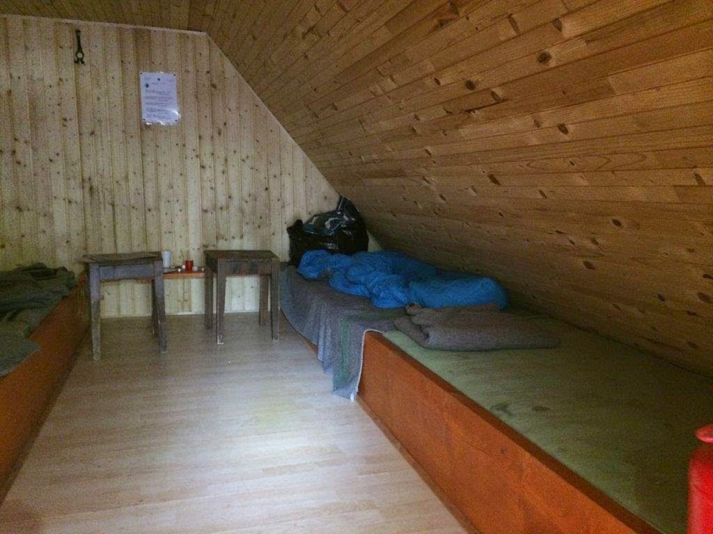 - Spodnji del je rezerviran za člane AO in GRS in je zaklenjen; 2 ležišči, peč, miza, stoli, klop,